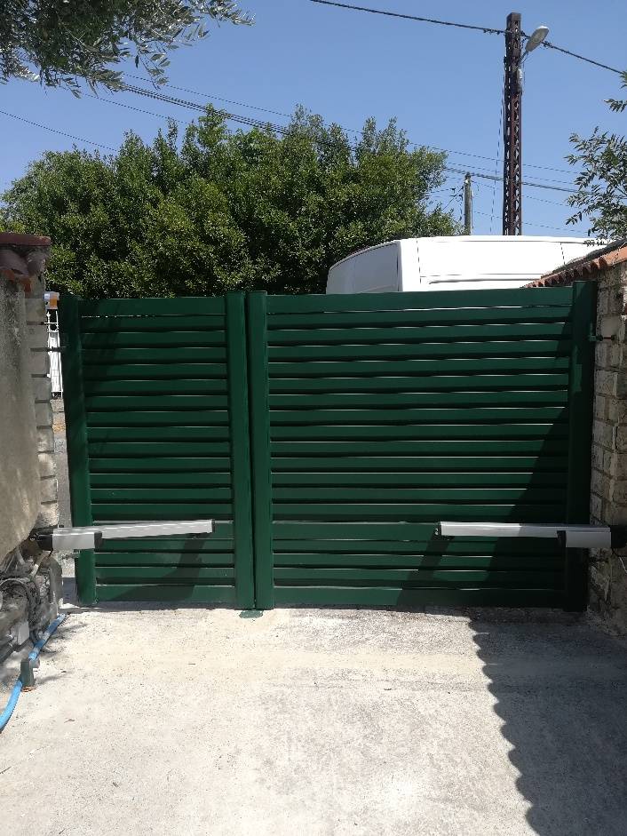 Installation d'un portail 2/3 1/3 battant en aluminium à lattes persiennes motorisé à Avignon près de Villeneuve les Avignon