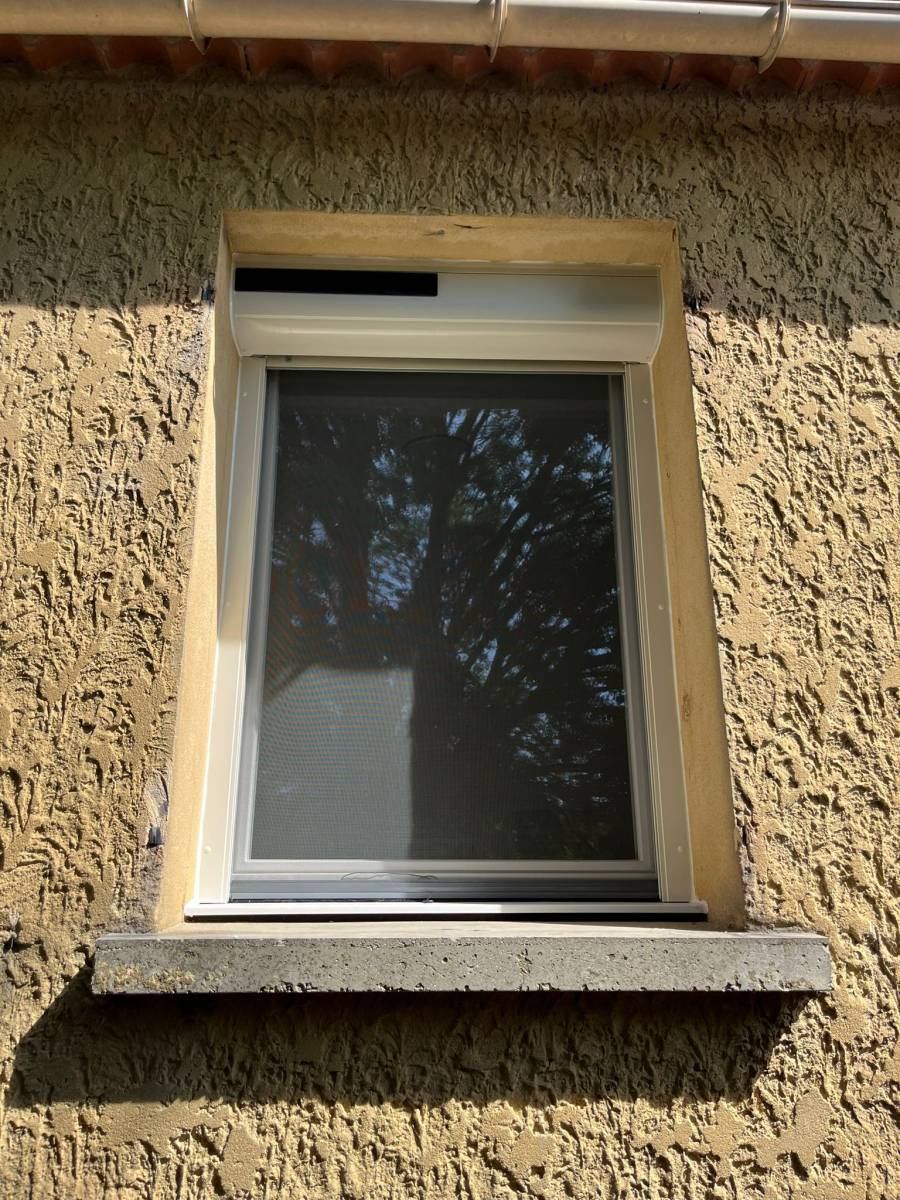 Les volets roulants installés sur Morières les Avignon s'harmonisent parfaitement avec les fenêtres en PVC veiné blanc haut de gamme, apportant une touche moderne et fonctionnelle à la façade de la maison.