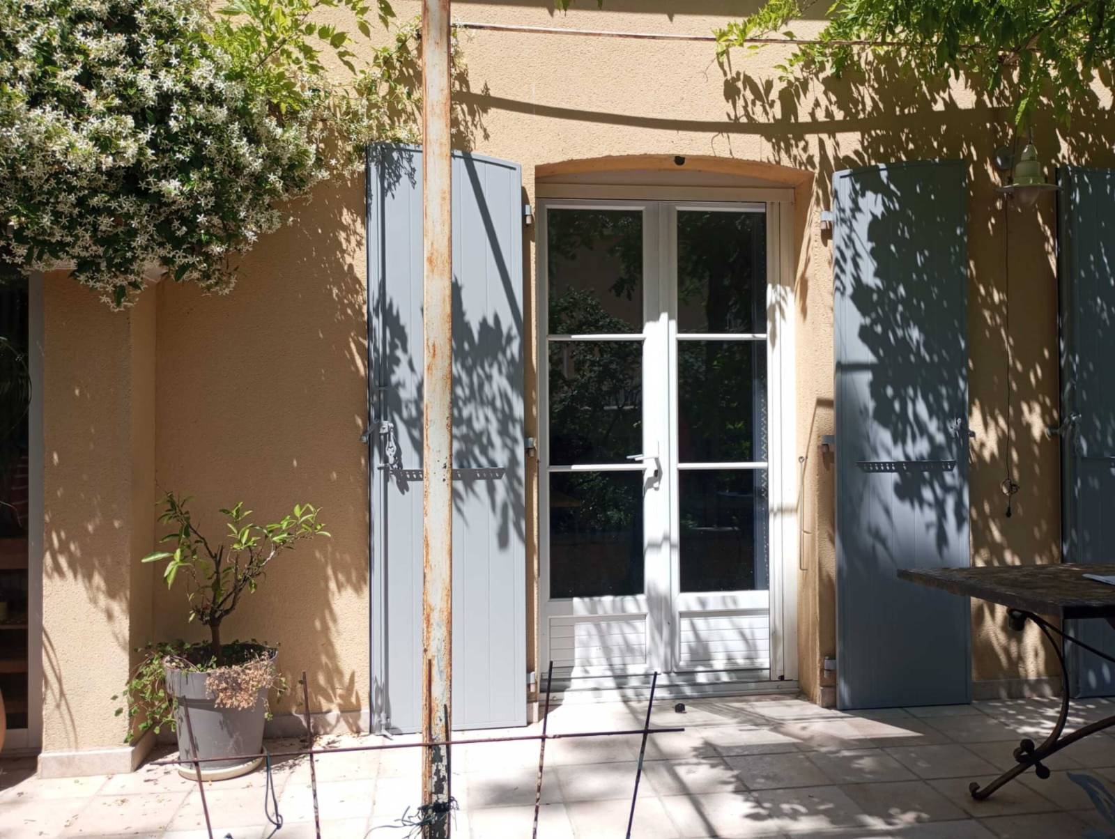 Nous avons récemment réalisé une pose en rénovation de volets battants cintrés et isolés en aluminium sur Avignon, sur une maison individuelle construite dans les années 90. Le client souhaitait remplacer ses anciens volets bois par une solution durable, isolante et sans entretien.