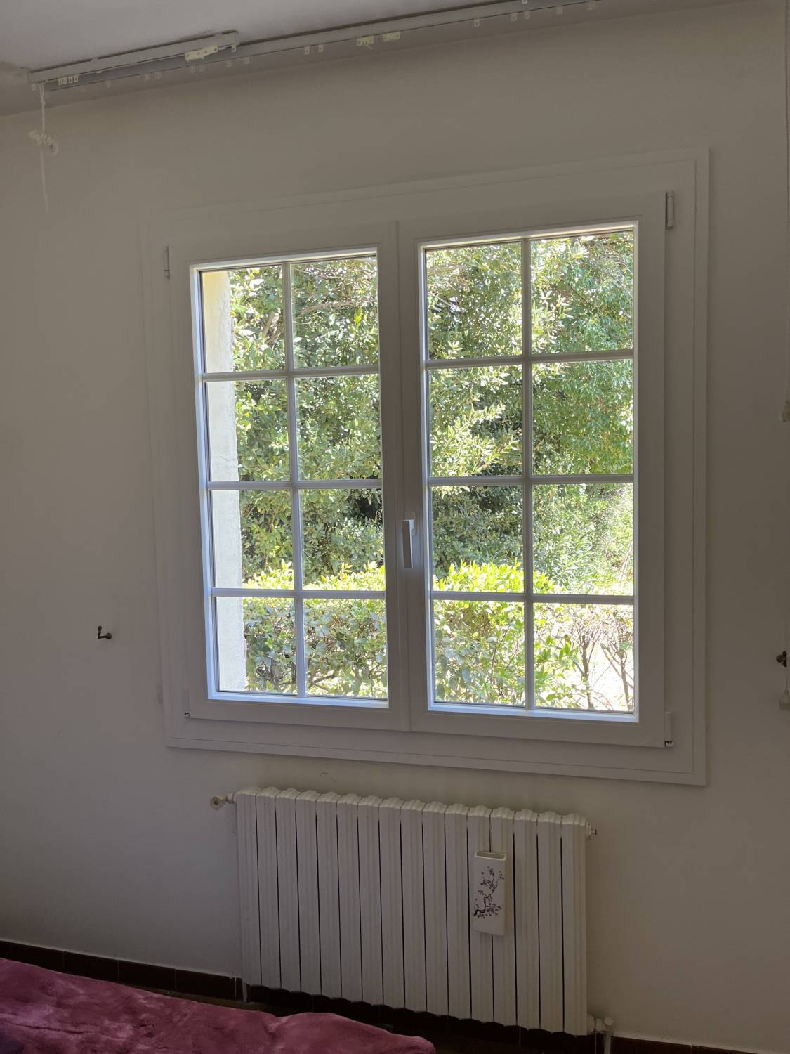 Les fenêtres en PVC blanc avec petits bois intégrés dans le vitrage constituent une solution élégante et performante pour la réhabilitation de votre espace à Vers Pont du Gard, à proximité de Remoulins.